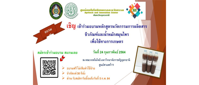 จัดอบรมเชิงปฏิบัติการ “หลักสูตรนวัตกรรมการผลิตสารชีวภัณฑ์และน้ำหมักสมุนไพรเพื่อใช้ทางการเกษตร” |
