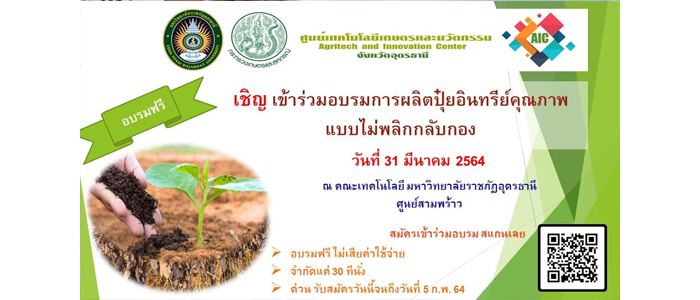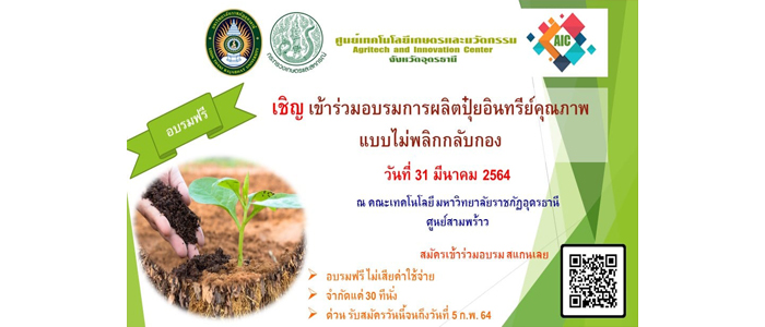ขอเชิญเกษตรกร และผู้สนใจทั่วไป เข้าร่วมอบรมฟรี ผลิตปุ๋ยอินทรีย์คุณภาพแบบไม่พลิกกลับกอง |