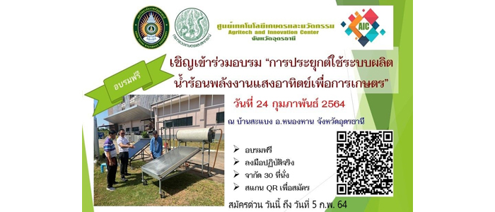 เชิญเข้าร่สมอบรม การประยุกต์ใช้ระบบผลิตน้ำร้อนพลังงานแสงอาทิตย์เพื่อการเกษตร |